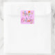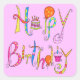 Cuadrada Pegatina Rosa Feliz Cumpleaños
