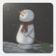 Este Pegatina de Snowman presenta un dibujo de lápiz de color de un muñeco de nieve mirando la luna y las estrellas.