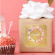 Etiqueta de coquito con corona de Navidad y cinta de la bandera puertorriqueña. Fondo de aspecto dorado
