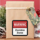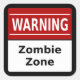 Advertencia - Zombie Zone - pegatina de estilo de señalización de advertencia rojo, blanco y negro.