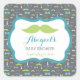 Cuadrada Pequeño hombre Pegatina Baby Shower, Verde azulado
