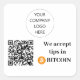 Personalizable Aceptamos Consejos en pegatina de Bitcoin para pequeñas empresas. Personalizar el logotipo de la empresa y el código QR de la cartera de Bitcoin con el suyo propio.