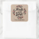 Cuadrada Personalizado hecho con amor Kraft Square Pegatina