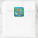 Cuadrada Pescador de oso marrón niño Pegatina verde azul