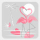 Un par de flamencos rosas con cuello curvado forman un corazón parado en el mar en una playa iluminada por la luna. Este diseño elegante y romántico con un toque retro es perfecto para bodas, El día de San Valentín o personas a las que les encantan los flamencos. Creado en un esquema de color rosa, gris y blanco con un fondo de cambio de color. Un diseño de personalizable para que puedas personalizar con tu propio texto, imágenes e ideas. Imagen original de arte digital.
