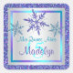 Los copos de nieve purpurinoso, turquesa, verde azulada, rosa y gris plateado Quinceanera (Mis Quince Años) favorecen al pegatina y/o al sello para sobres, que coincide con la invitación invernal del partido Quinceanera que se muestra a continuación.