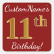 Cuadrada Red, Faux Gold 11th Birthday + Pegatina de nombre