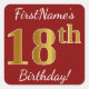 Cuadrada Red, Faux Gold 18th Birthday + Pegatina de nombre