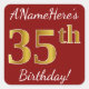 Cuadrada Red, Faux Gold 35th Birthday + Pegatina de nombre