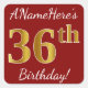 Cuadrada Red, Faux Gold 36th Birthday + Pegatina de nombre