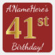 Cuadrada Red, Faux Gold 41st Birthday + Pegatina de nombre