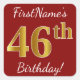 Cuadrada Red, Faux Gold 46th Birthday + Pegatina de nombre