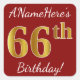 Cuadrada Red, Faux Gold 66th Birthday + Pegatina de nombre