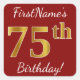 Cuadrada Red, Faux Gold 75th Birthday + Pegatina de nombre