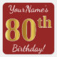 Cuadrada Red, Faux Gold 80th Birthday + Pegatina de nombre