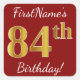 Cuadrada Red, Faux Gold 84th Birthday + Pegatina de nombre