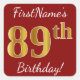 Cuadrada Red, Faux Gold 89th Birthday + Pegatina de nombre