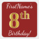 Cuadrada Red, Faux Gold 8Cumpleaños + Pegatina de nombre pe