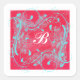 Cuadrada Red y Aqua Swirls Pegatina Monogramada de 1,5"