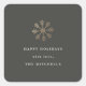 El pegatina de vacaciones First Snow presenta un sencillo fondo gris oscuro con un diseño de texto moderno en personalizable y un copo de nieve dorado encima. Es parte de la colección de vacaciones "First Snow" de Stacey Meacham. Consulte los demás elementos de coordinación en la descripción que figura a continuación.