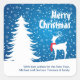 Un reno con una bufanda roja se detiene en una tormenta de nieve para reflexionar sobre un árbol solitario en este pegatina. Ideal para sellos para sobres o para añadir regalos de vacaciones. Disponible con productos coincidentes. com