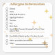 Disfrute del encanto retro con este moderno Pegatina de Información Alergen Retro Bakery, con fuentes retro y diseño beige neutro. Asegúrate de que tus clientes sepan qué posibles alérgenos o decoración no comestible se utiliza dentro o en tus pasteles, perfecto para añadir a tus pedidos de pasteles o regalar a los clientes.