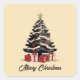 Cuadrada Retro Merry Christmas Tree Pegatina