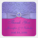 Cuadrada RIBBON Fuchsia IMPRESO, Pegatina Boda morado