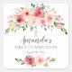 Cuadrada Rosa de Peonies Pegatina de la primera comunión fl