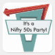 Pegatina cuadrado con una imagen de un cartel de comedor de los años 50. Personalizar con los nombres de los invitados, mensaje de agradecimiento u otro sentimiento personal por un gran favor del partido de los años 50. Ver pegatina vinílico cortado por personalizado, bolsa de favoritas, etiqueta de favor y etiqueta. Ver toda la colección de Pegatinas de los años 50 en INVITES | Sección Pegatinas y etiquetas.