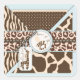Huellas de jirafa, cebra, leopardo, chita con cintas de guarnecido de encaje y un logotipo de jirafa y pacificador.