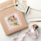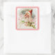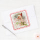 Pegatina cuadrado para igualar nuestra invitación "San Nicolás" con una hermosa imagen vintage de San Nicolás en medio de cintas huecas y rosas en un fondo rosado. Frontera roja. Vea la invitación, sobre, confeti, caja de favores, etiqueta de favor, bolsas de regalo, etiqueta y papel de envoltura. Ver toda la colección de Pegatinas de vacaciones en INVITES | Sección Pegatinas y etiquetas.