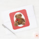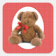 Ideal para sellar las invitaciones a la ducha de bebé o el regalo, este pegatina cuadrado tiene una imagen de un buen Sam viejo, un oso de peluche tambaleante con un arco rojo alrededor de su cuello que se sienta en un oval blanco con un borde rojo sobre un fondo de puntos de polka blancos sobre rojo. Ver pegatina de vinilo cortado por personalizado, confeti, bolsa de favores, caja de favores, etiqueta de favor, bolsas de regalo, etiqueta y papel de envoltura. Ver toda la colección de Pegatinas de Esquina Infantil en INVITES | Sección Pegatinas y etiquetas.
