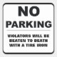 Sin estacionamiento - Los infractores serán golpeados hasta la muerte con una plancha de neumático.