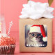 Un gato lindo con gafas y sombrero de Santa.