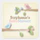 Cuadrada Sweet Birdie Twin Boy Chica Pegatina Baby Shower