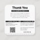El cliente de hoy quiere una experiencia de compra personalizada. Una nota de "gracias por su negocio" es una manera fácil y eficaz de entregarla. El seguimiento de una transacción con una sincera muestra de aprecio como una nota de agradecimiento, o incluso el envío de mensajes de "agradecimiento por su negocio" a sus pedidos, alienta la repetición de negocios y aumenta la defensa del consumidor por su negocio. Adweek sugiere que la personalización puede aumentar la eficiencia del gasto de marketing en hasta un 30%. Intentamos crear la tarjeta de agradecimiento perfecta para el cliente, manteniendo al mismo tiempo la flexibilidad suficiente para satisfacer las necesidades de cualquier empresa. (1) La tarjeta le da las gracias con un mensaje sincero de agradecimiento que puede personalizar. (2) Proporciona una sección para que todas tus cuentas de medios sociales fomenten una mayor conexión y oportunidades de compra. (3) Proporciona una sección que le permite añadir promociones especiales para visitas repetidas. (4) Proporciona una sección para fomentar las calificaciones de los clientes en los directorios de empresas. (5) La parte posterior proporciona una sección para su información general de contacto y logotipo.