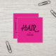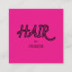 Para estilistas y coloristas de pelo, una tarjeta de visita minimalista de estilo cuadrado con tipografía fresca y retro con "HAIR" en rosa y negro sobre un fondo rosa brillante. El lado inverso tiene su información básica con la capacidad de agregar o eliminar líneas de texto de su preferencia, rodeadas por un borde negro oscuro. Ideal para los independientes y los artistas independientes. ¡Envíame un mensaje si necesita ayuda para formatear!