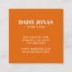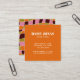 Audaces patrones de flores de estilo retro de los años 70 en naranja vibrante, lila, verde en la parte posterior. Naranja sólido en el frente con su información de contacto. Un ambiente retro de los años 70 con un estilo burgués.