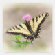 La mariposa de cola cruda del Tigre del Este visita una flor de trébol. Imagen de la flora y fauna capturada en nuestro jardín de New Hampshire.