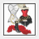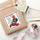 Pegatina cuadrado para hacer coincidir nuestra invitación "Cancan Costume 1" con una imagen de un corsé de alambre negro, una forma de vestir con un disfraz de cancano rojo con un bullicio de plumas negras, un collar de cuentas negras, un par de botas canas negras, una boa roja con plumas y una parte de un reloj de pared sobre blanco. Borde negro. Consulte la invitación y el sobre coincidentes. Ver toda la colección de Pegatinas canacos en INVITES | Sección Pegatinas y etiquetas.