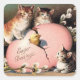 Esta imagen vintage de arte fino de tres gatitos y un huevo rosa de Pascua con una polluela amarilla que sale de él ahora es de dominio público. ¡Celebremos Pascua a la antigua!