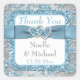 Este elegante azul de hielo cuadrado de 1.5", color gris plateado floral FAUX purpurina patrón de damasco favor de la boda gracias pegatina tiene un fondo de variados copos de nieve blancos sobre él y una cinta azul de acero IMPRESO y un arco con un par de joyas de diamante y purpurina azul FAUX se unió a los corazones que concuerdan con la invitación de boda de invierno que se muestra a continuación. Puedes cambiar el texto para decir lo que quieras, y también puedes cambiar el tamaño y/o forma del pegatina, aunque para obtener mejores resultados, por favor envíame un correo electrónico para cambiar la forma. Si necesita cualquier otro elemento coincidente en este diseño, envíe su solicitud a niteowlstudio@gmail.com.