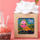 La princesa de juguetes WhimsyQuest Peachy Keen en el diseño vintage de etiquetas de crate. La princesa Peachy vive sobre su Peach Orchard bajo un hermoso cielo estrellado nocturno.