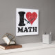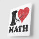 Que todos sepan lo mucho que les encantan las matemáticas con este reloj de pared temático que dice "I Heart (Love) Math" en una audaz letra negra con corazón. El diseño está angustiado por un aspecto vintage.
