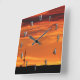 Una puesta del sol viva es el contexto para este aparejo de la paliza, disparando el tubo en los campos petrolíferos de Bakken.