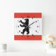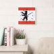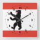 Reloj de pared con bandera de Berlín, bandera de estado con franjas horizontales de rojo y blanco, con un ilustracion de un oso negro dentro de un escudo