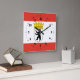 Reloj de pared con bandera variante de Berlín, bandera de estado con franjas horizontales de rojo y blanco, con el ilustracion de un oso negro dentro de un escudo con corona