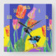 Cuadrado Blue Wren Watercolor Pájaro Niños Reloj de habitac