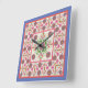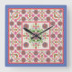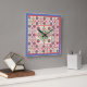 Reloj de pared acrílico cuadrado de bonito, con un borde floral decorativo basado en un patrón Rangoli, sobre un fondo crudo. Parte de la colección Posh & Painterly 'Rangoli'.